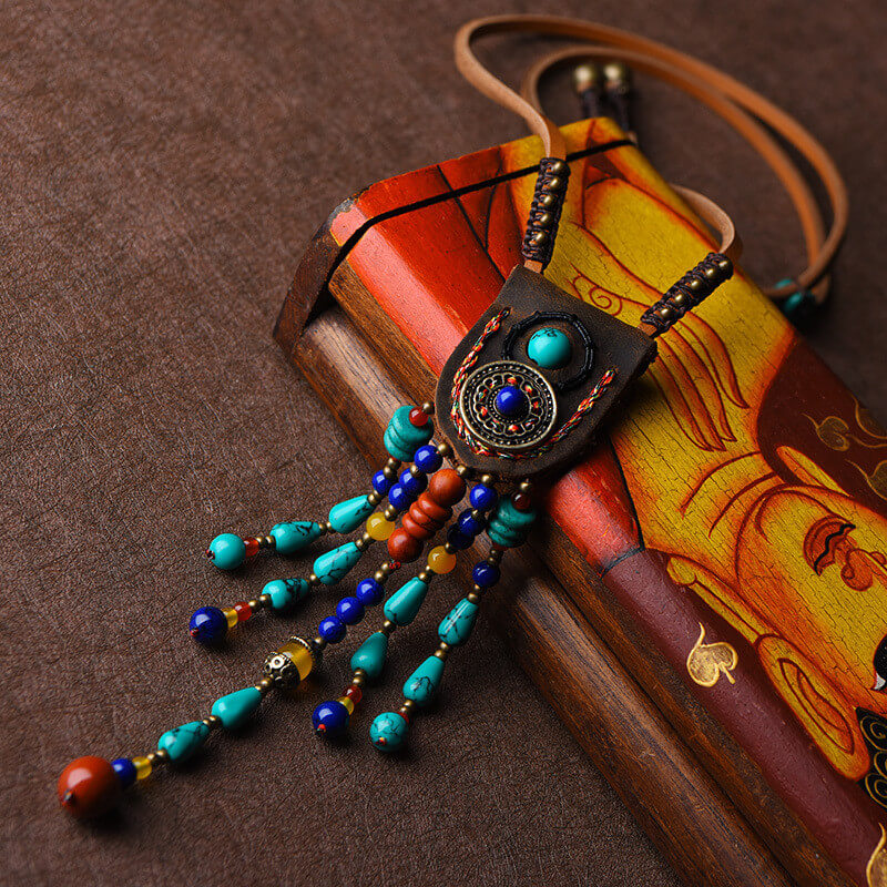 Accessory: No Overview: (1)Cowhide Leather + Turquoise+ Blue Color Stone Fit &Sizing: Non-Stretchable Detail In Tile Measurement
