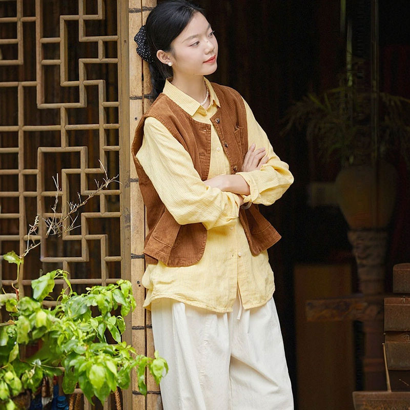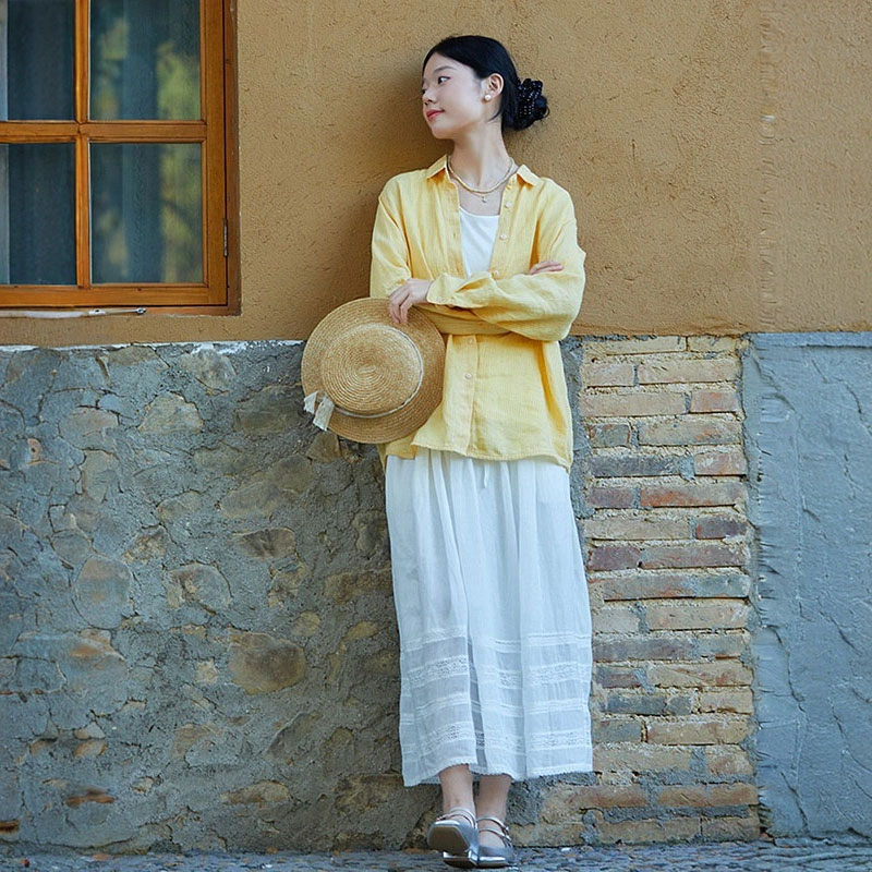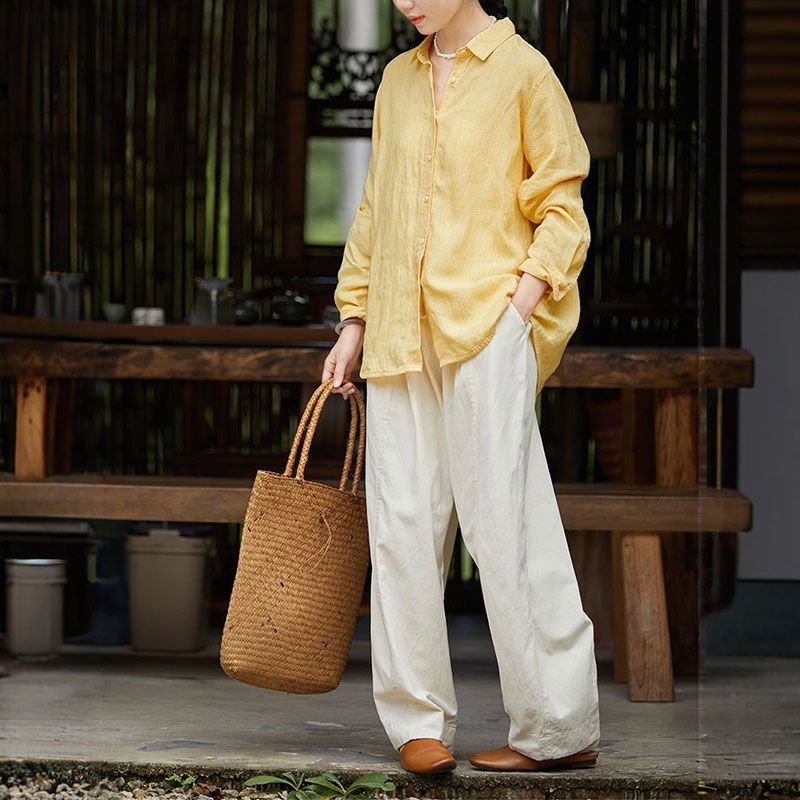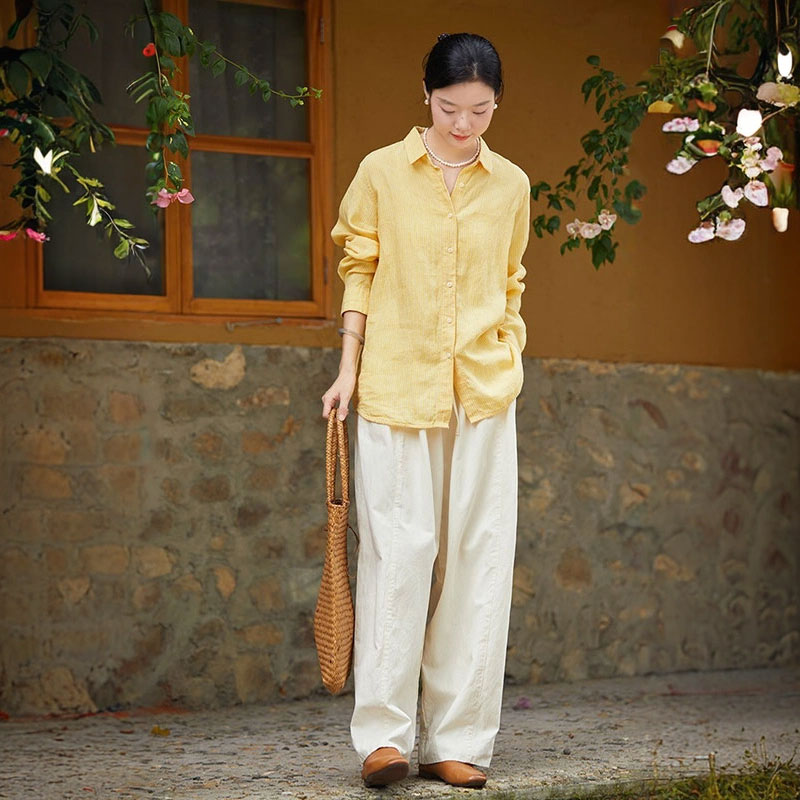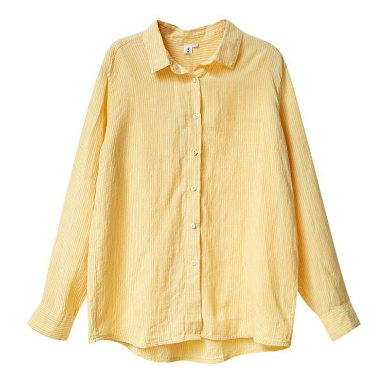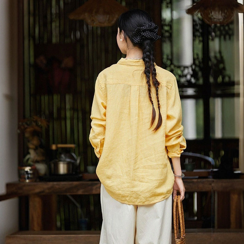 Loose-Fit Pinstriped Linen Yellow Shirt