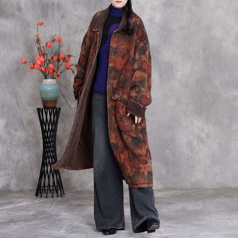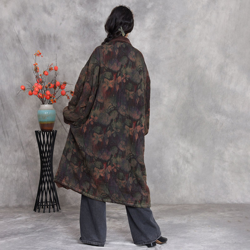 Polo Neck Mid-Calf Printed Cotton Coat