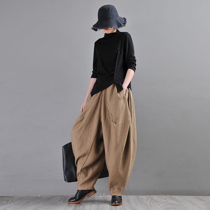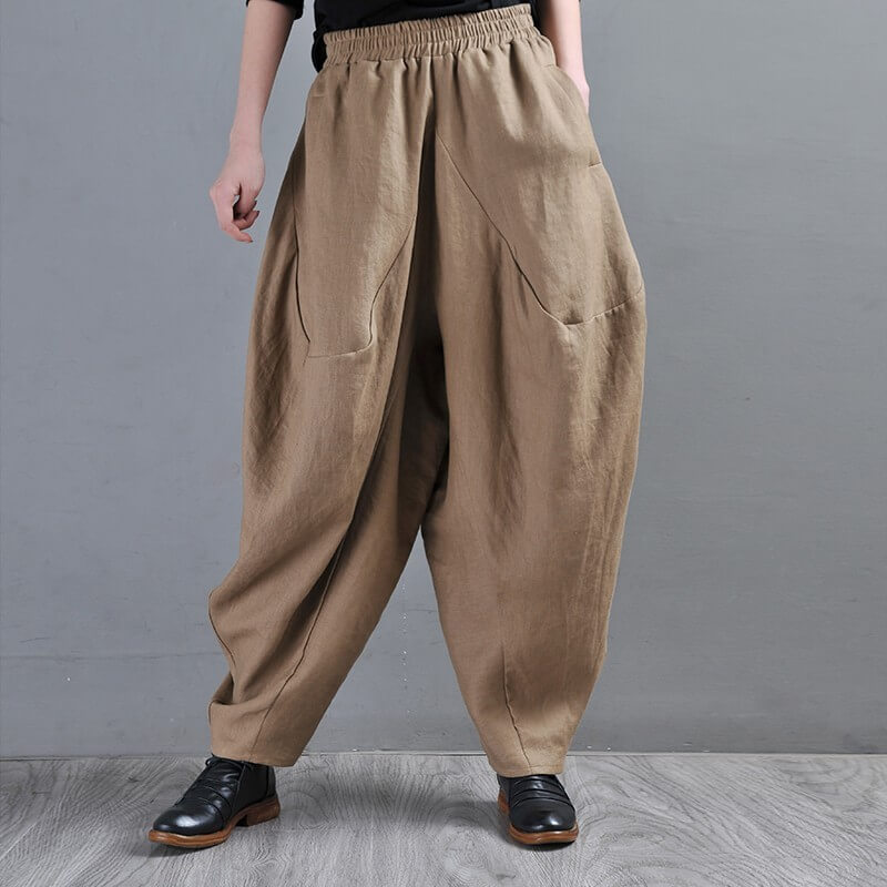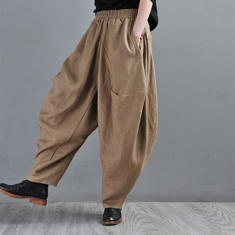 With their earthy tones and intricate harem silhouette, our trousers will bring a unique, boho-chic vibe to your daily look. Plus size friendly and sustainable, these full-length trousers feature an elastic closure for an easy, comfortable fit - perfect for any season! |