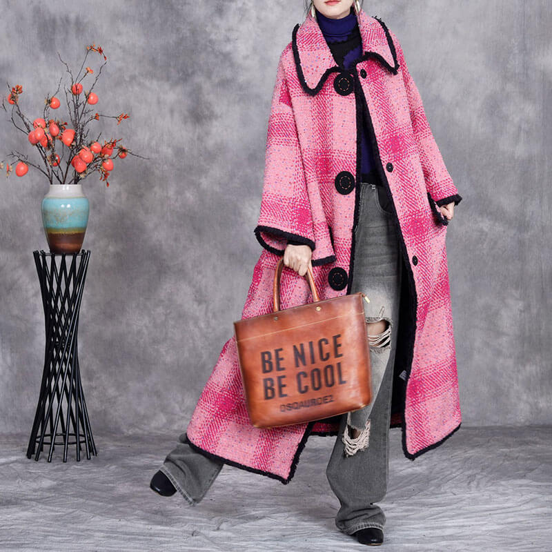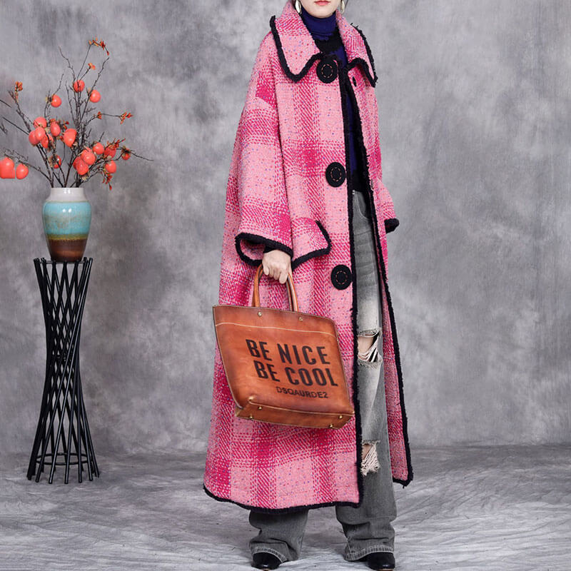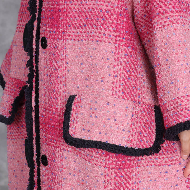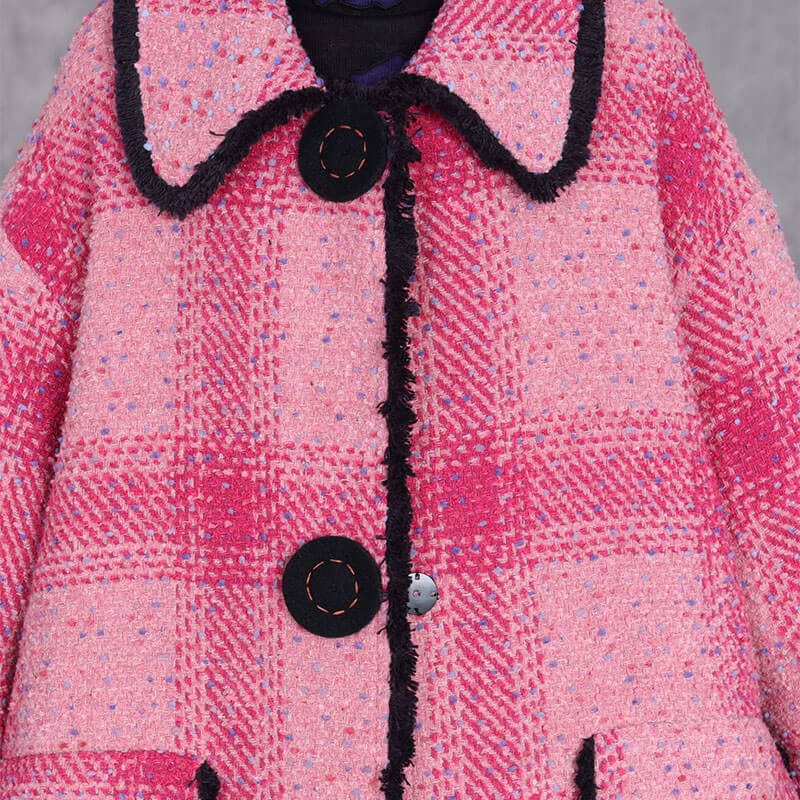 Item's name:Pink Tartan Woolen Plus Size Coat