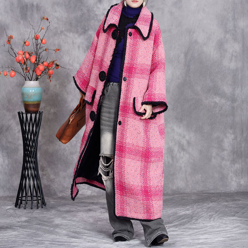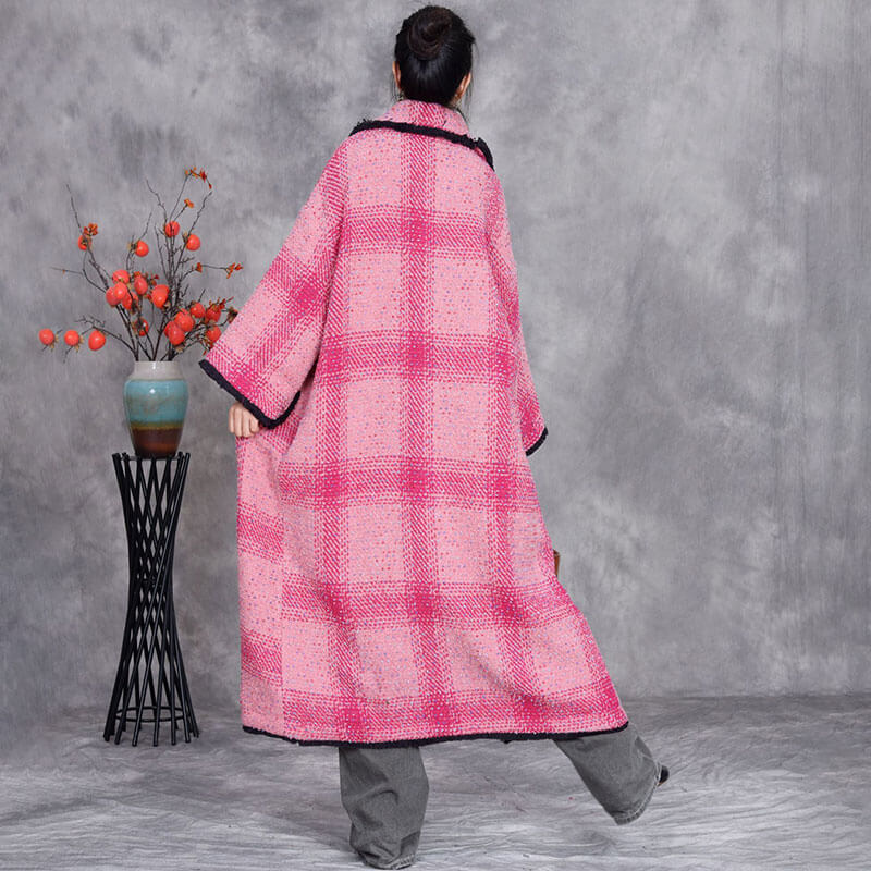 Pink Tartan Woolen Plus Size Coat
